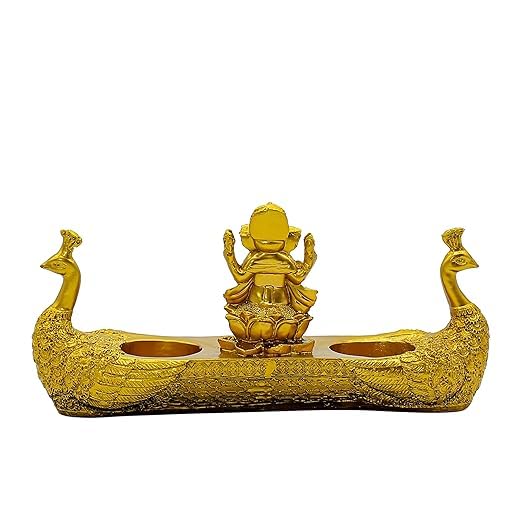 Illuminate your space with divine grace using this Ganesha Peacock Candle Holder, a stunning blend of spirituality and artistry. Handcrafted from high-quality gold-plated metal, this piece features Lord Ganesha with an intricately designed peacock, symbolizing beauty, wisdom, and enlightenment.