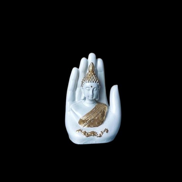 Elevate your space with serenity and spiritual charm with this Polyresin Hand Palm Buddha Idol Showpiece. Featuring a beautifully crafted White Buddha seated gracefully inside a symbolic open hand, this elegant décor piece represents protection, blessings, and peace.